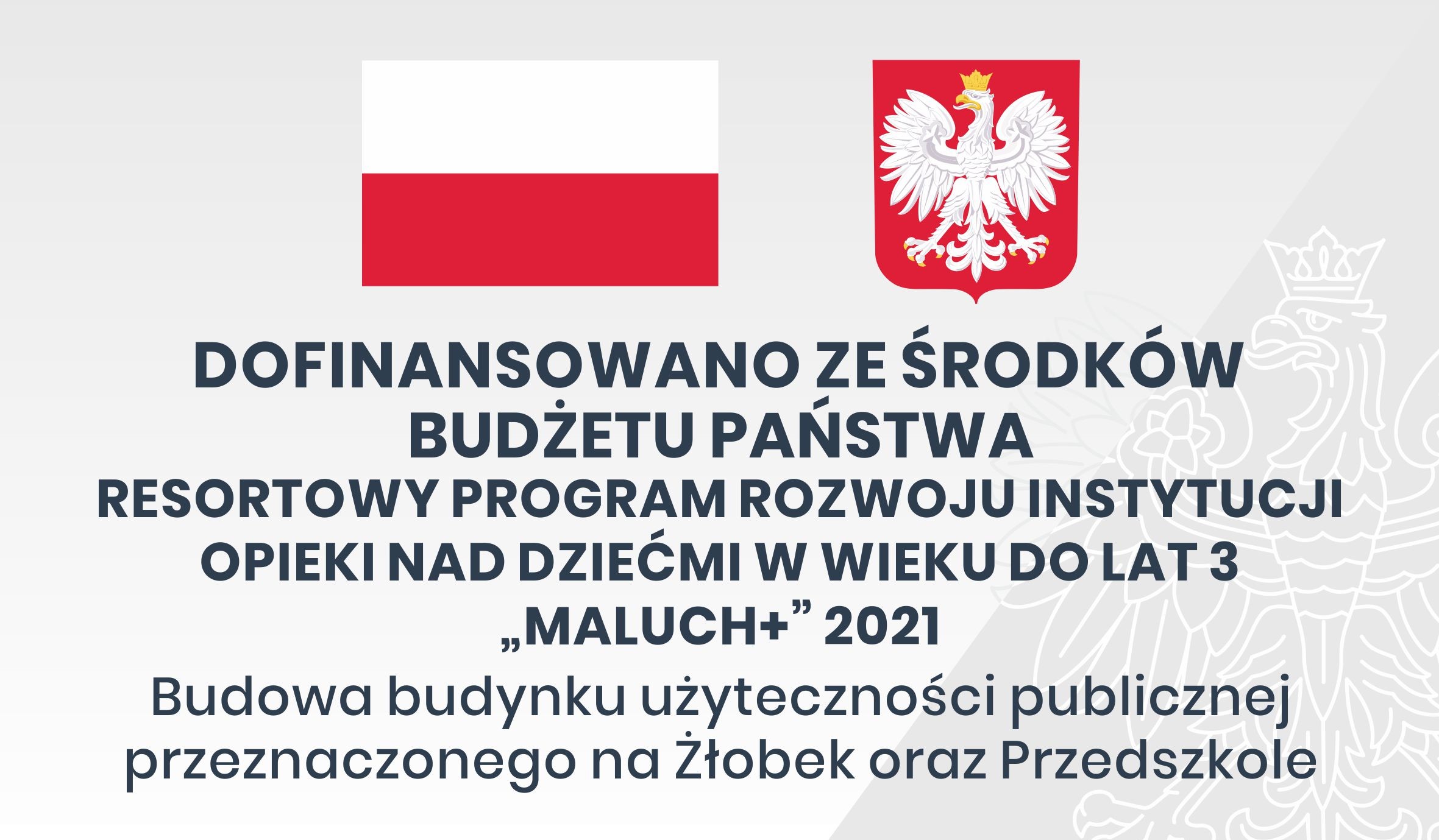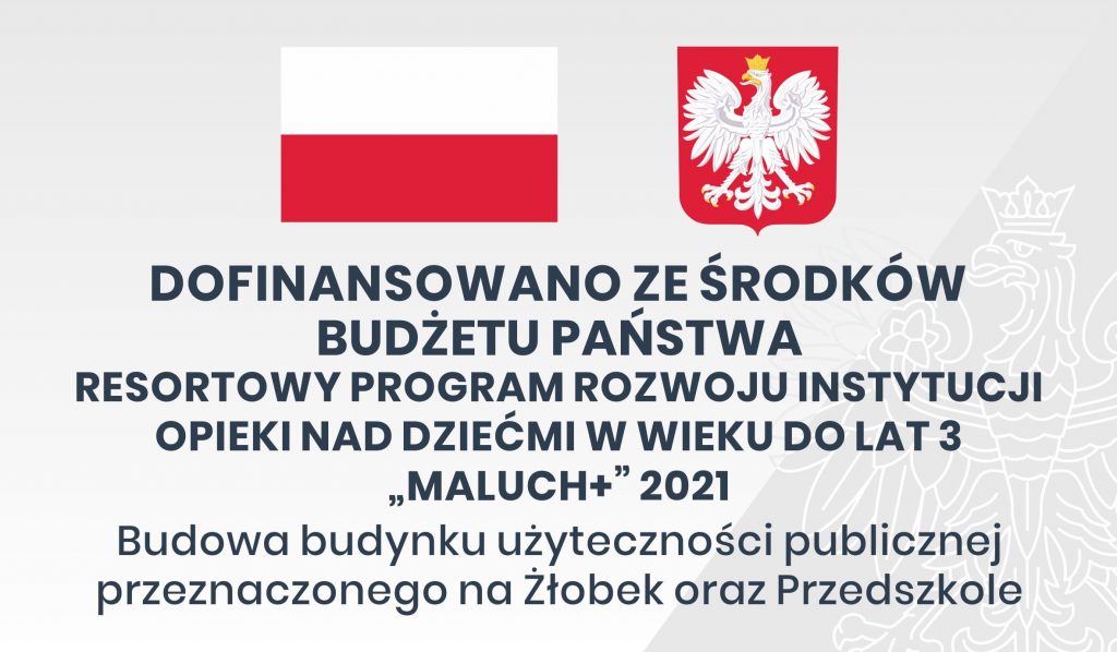 Środki w formie dotacji celowej w wysokości 1 914 000 zł zostały przekazane gminie z budżetu państwa w ramach programu „Maluch + 2021” na realizację projektu pn. „Budowa budynku użyteczności publicznej przeznaczonego na Żłobek oraz Przedszkole”.